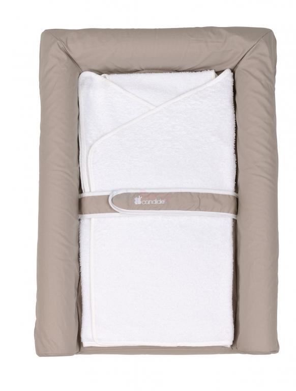 Unikátny prebaľovacia podložka od francúzskej značky Candide je novinkou na trhu. Prebaľovacia podložka má vyvýšené bočné strany. Pre zaistenie dieťaťa pred nechceným pohybom na prebaľovacej podložke je bezpečnostný pás. Na spodnej strane je protišmykový materiál. Súčasťou je osuška zo savého froté. Vnútro prebaľovacie podložky je zložený z dvoch materiálov: polyuretánovej peny a pre pohodlné ležanie a tvarovanie polyesterové guľôčky, ktoré sa prispôsobia telíčku bábätka. Prebaľovacia podložka je potiahnutá materiálom, ktorým nepretečie tekutina a je odolný voči skvnám.