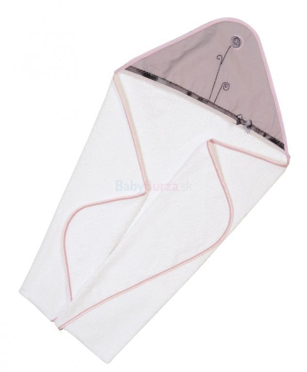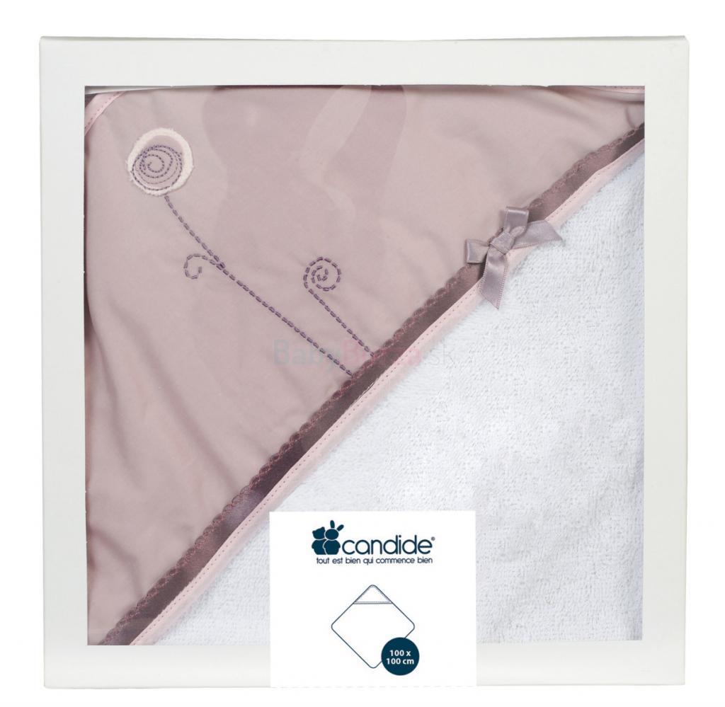 Rozmery osušky sú 100 x 100 cm. Uterák s kapucňou je veľmi praktický. Osuška je z veľmi jemného a savého froté, ktoré nedráždi detskú pokožku. Na prednej strane kapucne je staroružová farba s kvietkami as lesklou vínovou stuhou a mašľou. Osuška je lemovaná svetlo ružovou farbou. Zabalené v darčekovej krabičke.